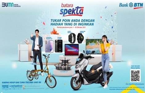 Batara Spekta BTN Berhadiah Motor-Sobat pemburukuis, siapa yang tak kenal dengan Batara Spekta? Ini merupakan program rutin dari Bank Tabungan Negara untuk para nasabah tercintanya. Nasabah BTN akan mendapatkan point berdasarkan sado rata-rata tabungan. Di samping itu, poin juga bisa didapatkan bila nasabah terus bertransaksi dengan menggunakan kartu maupun mobile banking. Poin spekta ini ada masa berlakuknya lho yaitu selama satu tahun. Jika telah melewati batas waktu tersebut poin spekta akan hangus dan tidak bisa ditukarkan oleh nasabah.