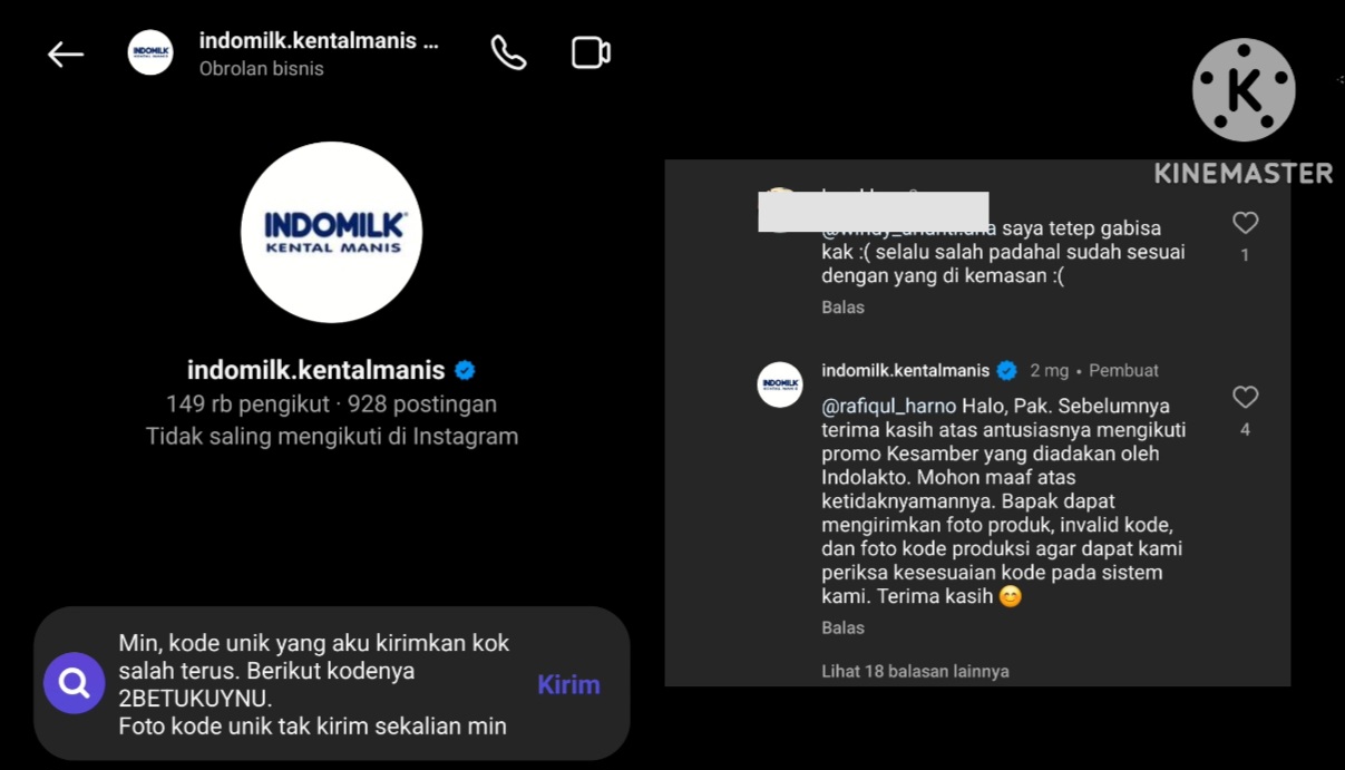 Mengenai salah input kode unik ini bisa kamu lihat di kolom komentar instagram @indomilk.kentalmanis. Di situ lebih dari satu orang yang komplain kenapa kode yang dimasukkan salah.
