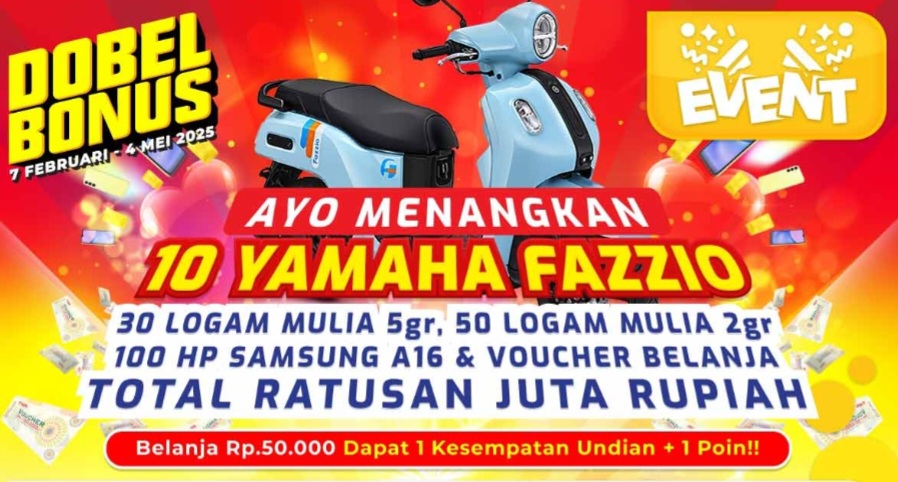 Undian Dobel Bonus Yogya 2025 berhadiah 10 Motor Yamaha Fazzio, Logam Mulia ratusan juta-Sobat pemburukuis, Yogya Group kembali menghadirkan promo dobel bonus. Promo Dobel Bonus ini spesial hanya untuk pelanggan yang sudah mendaftarkan diri sebagai member dan mempunyai kartu Yogya Card.